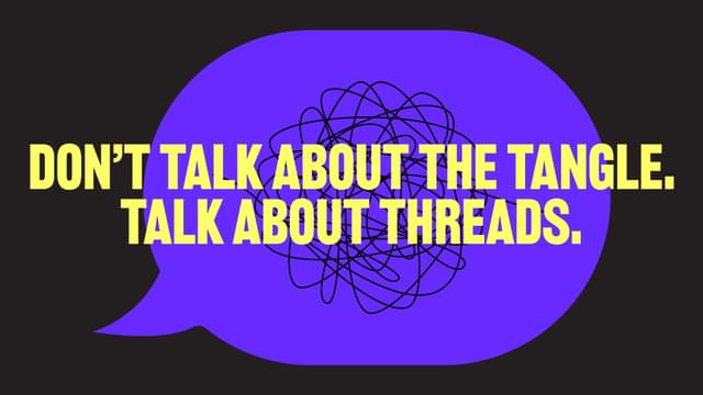 So here’s the secret; Don’t talk about the tangle. Talk about the threads.