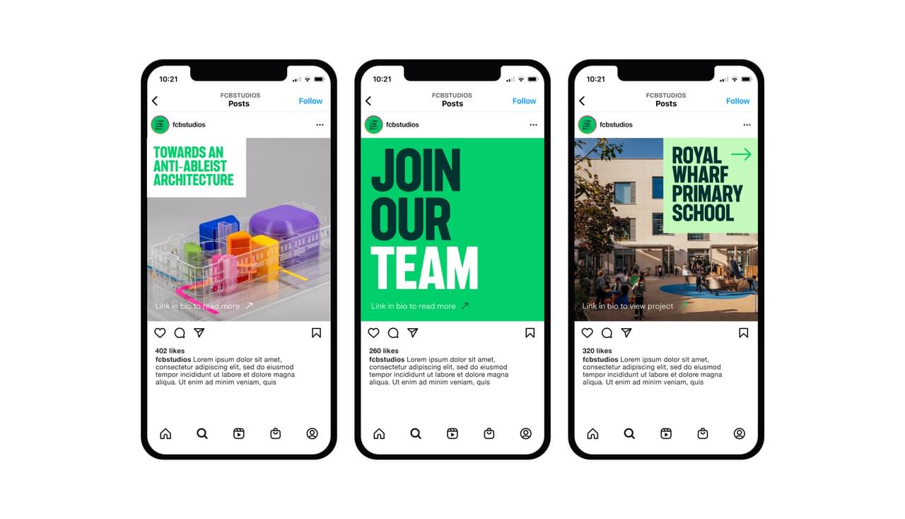 The direction for the new brand was guided by FCBStudios’ core mission of pushing boundaries, with their pioneering work going against the grain of their sector. We built the brand around the idea of ‘Architecture for a Changing World’, with a refreshed tone of voice that better reflects their leading work in sustainable design.