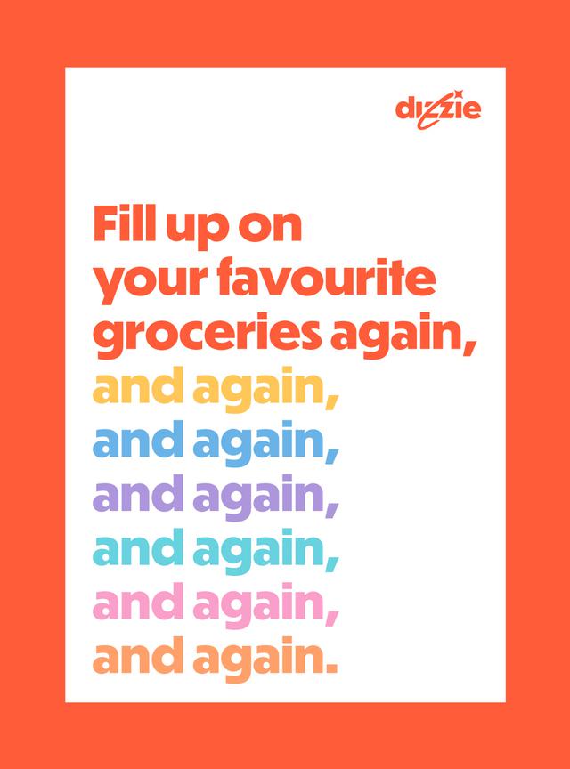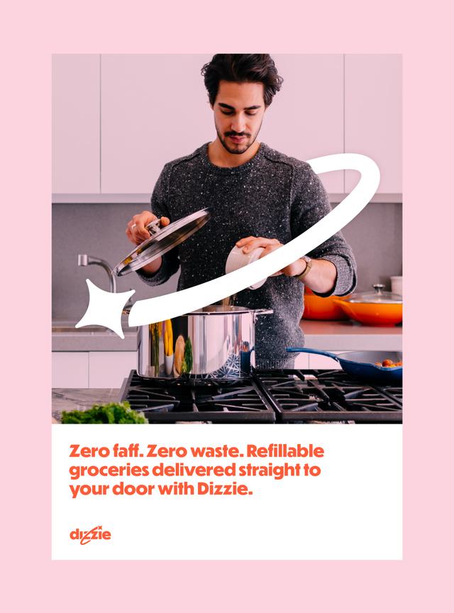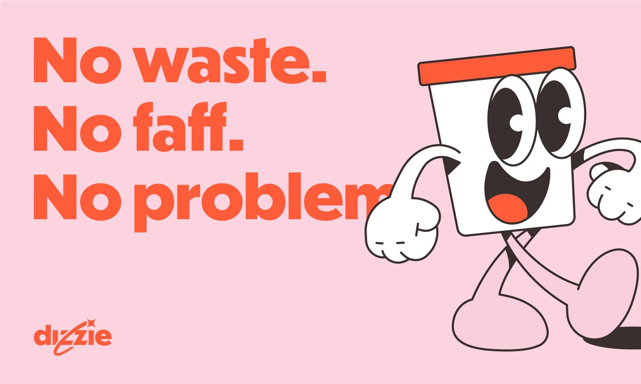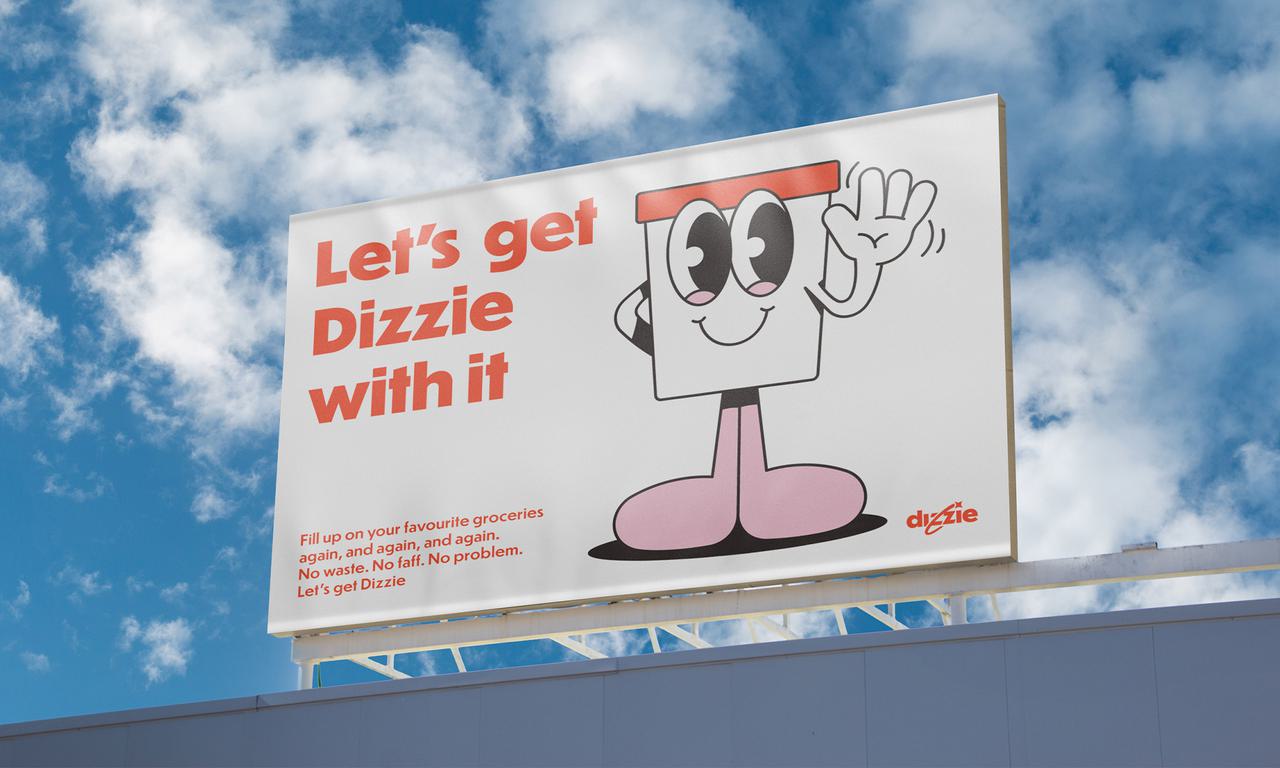 From the simplified product illustrations through to the Dizzie ‘whoosh’ and brand mascot, we created an identity full of movement and character that would help build brand recognition. Whilst combining this with a unique tone of voice that captures the surprising and satisfying moments of refill shopping, we were really able to bring Dizzie’s personality to life.