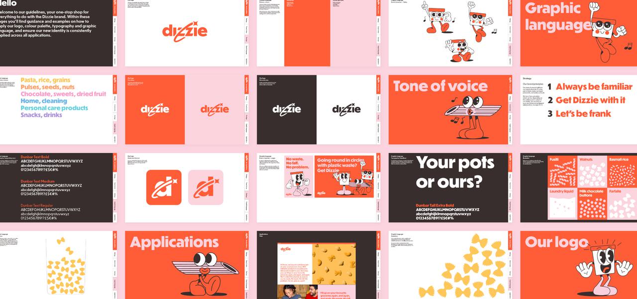 With Dizzie, we built a sustainable branding approach that became an eco friendly packaging case study in its own right — proving how a refillable grocery service can feel fun, accessible, and aspirational. Through movement, personality, and a bold tone of voice, we reframed reusable packaging from “worthy but inconvenient” to joyful and everyday.