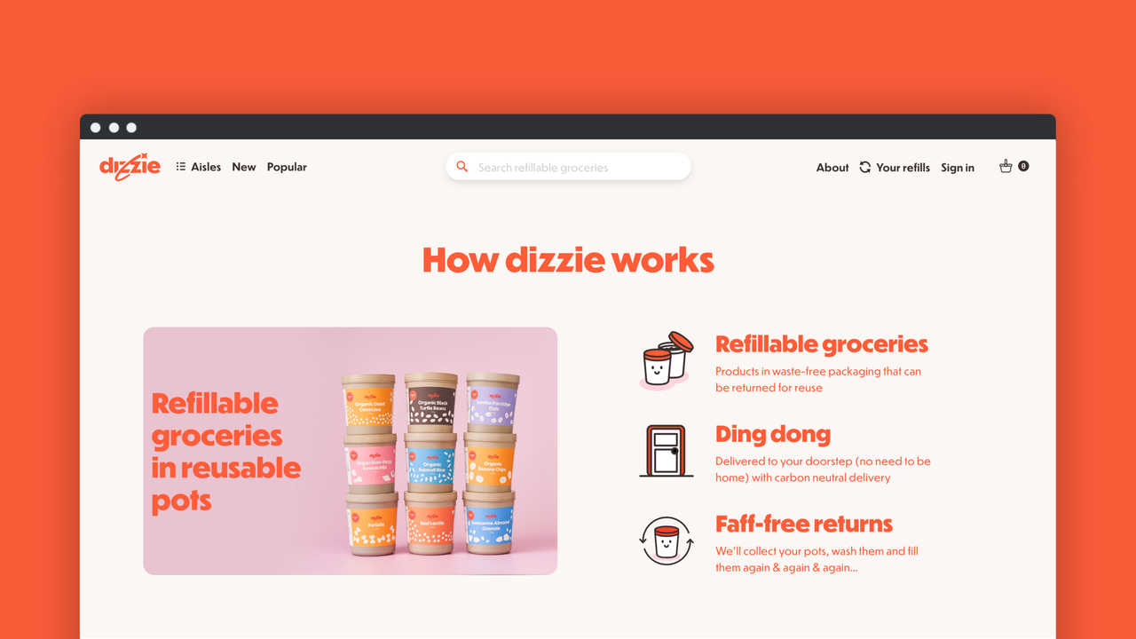 Dizzie’s new offering aims to change this – by delivering refillable products in reusable pots, direct to your door. However, to create mainstream appeal they needed to move beyond their “deep green” identity and improve desirability.