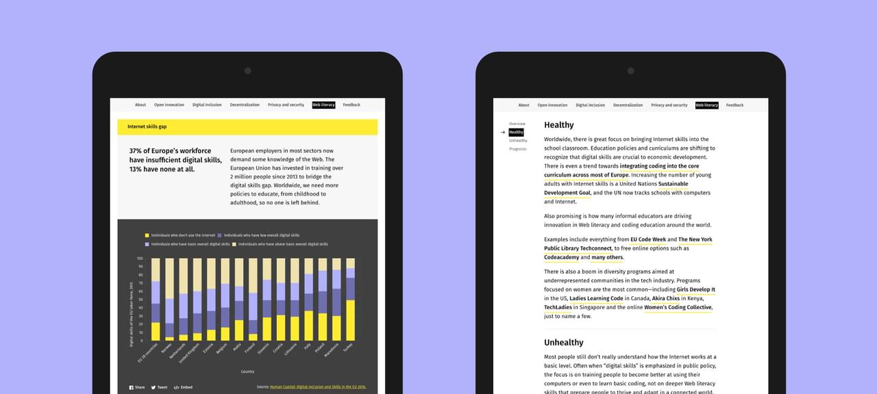 Amidst the development of Mozilla’s striking new brand identity, Johnson Banks approached us to launch an open-sourced interactive report which would raise awareness of the issues that impact the future of the open internet.