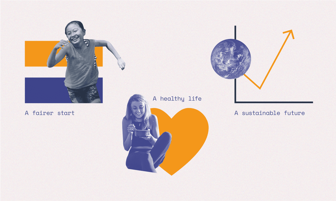As well as the interactive, we designed a report that continues the visual language of expanding arrows and collages in a static form. Additional collage illustrations for social assets were also created to promote the strategy site and report.