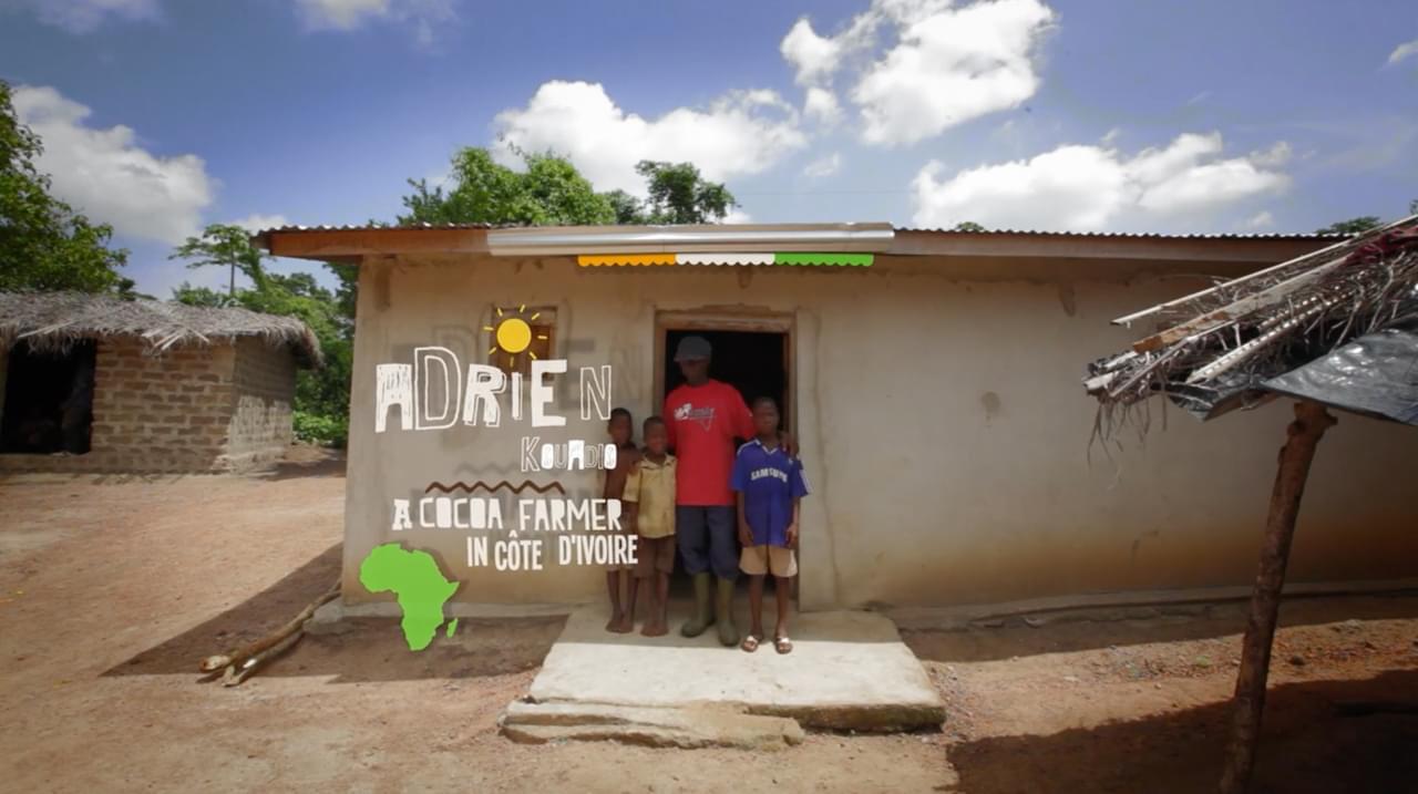 So we set out to find a cocoa farmer who could show us the difference that the Rainforest Alliance has made to his life. And boy did we! We were lucky enough to meet Adrian, a wonderful and charismatic cocoa farmer from the Ivory Coast. We spent a week with him and his family, on the edge of the rainforest, learning how he sustainably farms cocoa, and runs the local football team! Rainforest Alliance called the film 'the face behind your chocolate'. Why? Because it's helped chocolate-lovers see the people and communities they support by buying certified stuff.