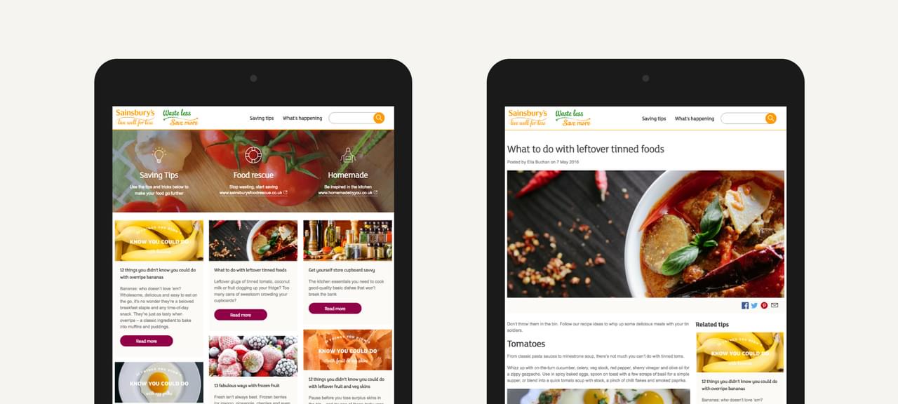 People need to make their money go further and don’t like seeing food go to waste. Sainsbury’s wanted to tackle the problem head-on with the launch of their ‘Waste Less, Save More’ campaign. They came to us to create a user-friendly digital hub where this content could live.