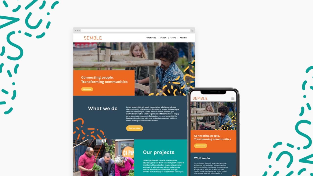 Semble, formerly known as Project Dirt, act as a community connector helping communities to thrive. They came to us looking for a new name and bold new identity to reflect the active, energetic nature of the organisation.