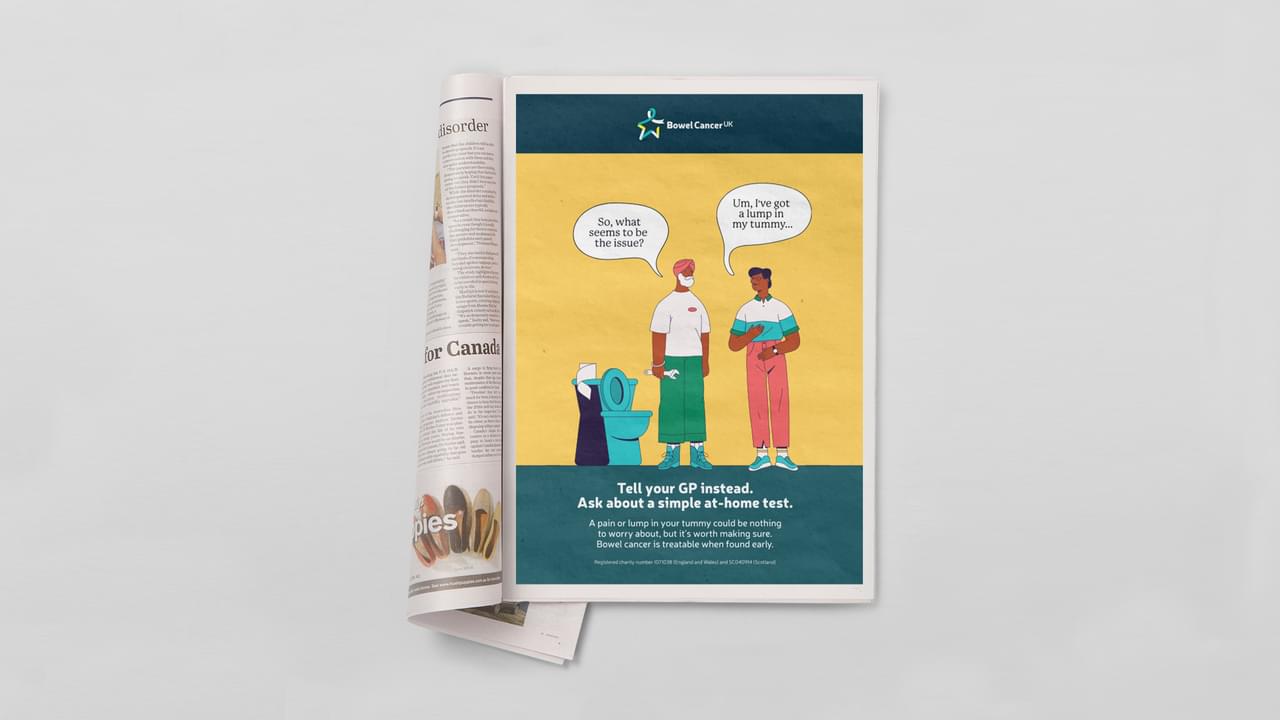 To have the biggest impact possible, Bowel Cancer UK had developed a behaviour change strategy targeting those least likely to recognise and act on possible symptoms. Our challenge was to develop an attention-grabbing campaign that would connect with these new audiences and prompt them to consider visiting their GP if they’re experiencing symptoms.