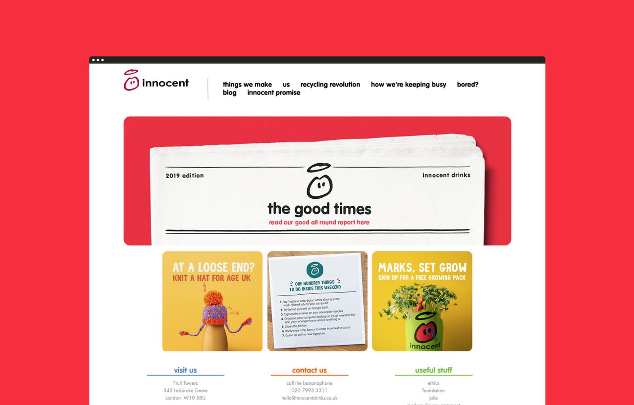 From coming up with the creative concept to writing and designing every feature in the The Good Times newspaper, we helped innocent talk about all of the good stuff they’ve been doing across their business and fess up to what they could be doing better, in the most innocent way possible.