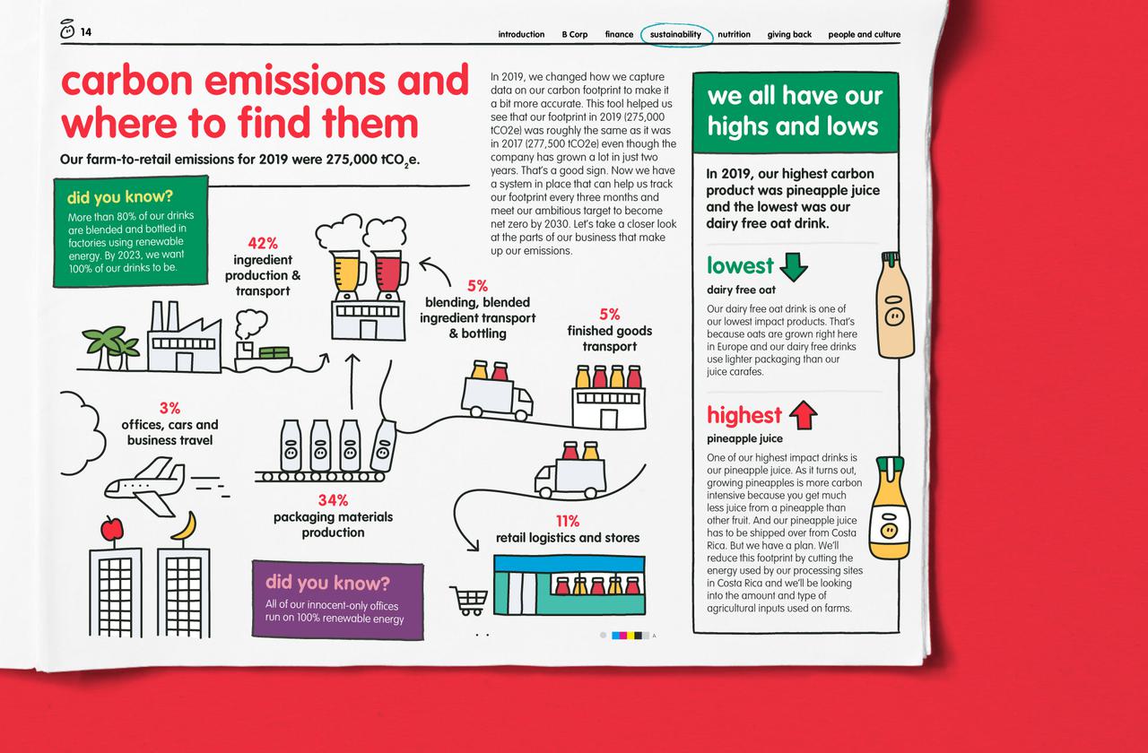 In the midst of a global pandemic, we decided to create innocent’s very own newspaper to talk about all of the good things they’ve been up to, and some of the things they could be doing better. This flexible approach to a report allowed us to create playful features for some of the lighter topics and hard hitting stories for more serious issues.